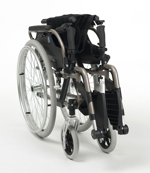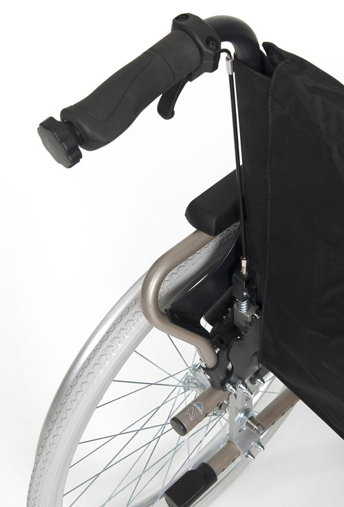 Для изготовления складной рамы используется прочный алюминиевый сплав. Коляска может быть укомплектована как литыми, так и пневматическими быстросъемными колесами, которые с помощью специальных адаптеров легко регулируются по высоте. Регулируемые по высоте подножки, легко снимаются или отводятся в сторону для удобства пересаживания пользователя. Модель оснащена ручным стояночным тормозом.
