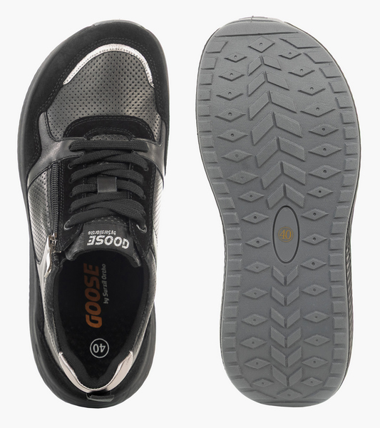 Особенностью моделей GOOSE является увеличенный мыс и эргономичная колодка, благодаря чему обувь идеально подходит при повышенной полноте стопы, деформациях пальцев и суставов, а также при Hallux Valgus. Выполненные в стиле спорт-кэжуал, кроссовки станут отличным вариантом для повседневных активностей в ритме города. Внутри стопа чувствует себя свободно: пальцы не сдавливаются, а болезненность и дискомфорт уходят. Плотный задник предотвращает завал стопы, а мягкий кант в области голеностопа защищает от натирания. Анатомическая стелька поддерживает своды и разгружает стопу во время движения. Верх кроссовок выполнен из натуральной кожи, а воздухопроницаемая подкладка позволяет ногам дышать, предотвращая потливость. Амортизирующая подошва с легким перекатом поглощает ударные вибрации и равномерно распределяет нагрузку на суставы, существенно облегчая усталость. Протектор из резины способствует устойчивости на гладких поверхностях. Кроссовки оснащены молнией и шнуровкой для удобной фиксации и легкого надевания.