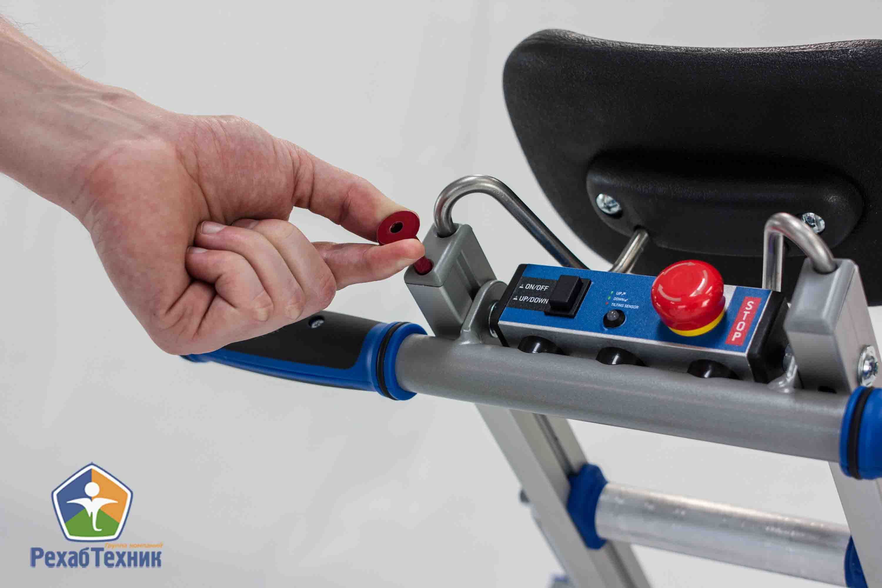 • Имеется аварийная стоповая кнопка для экстренной остановки всех движущихся частей подъемника